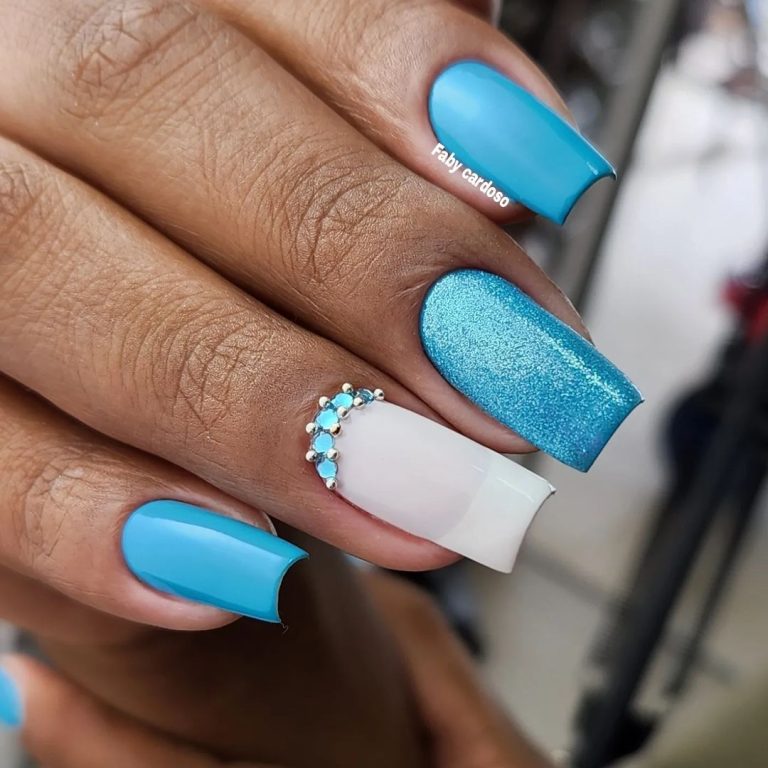 • Combine o esmalte azul com outras cores, como branco, preto, prata ou dourado, para criar um visual mais sofisticado.