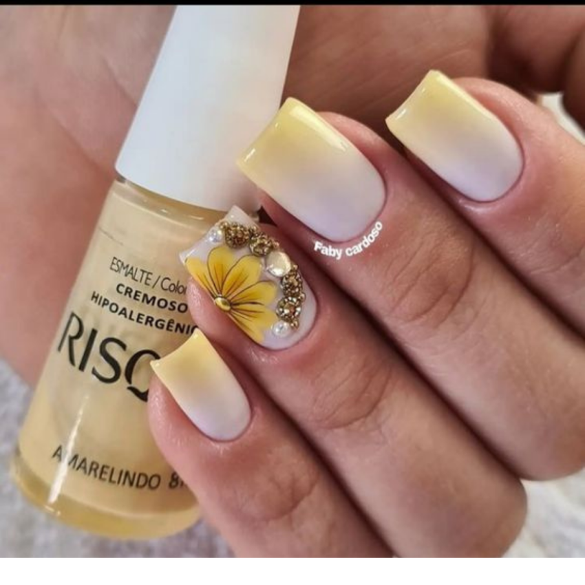 Francesinha – A manicure francesa é amada por todas as mulheres e pode ser presenteada com bijuterias. Os acessórios podem ser colocados sob a manicure francesa ou ao longo da unha.