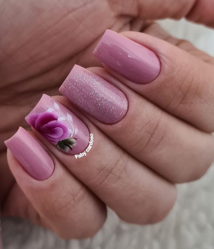 Outra opção que nunca sai de moda são os glitters nas unhas. Quando combinados com os esmaltes rosas, as unhas ficam um charme e super delicadas. Combinam com várias ocasiões e é uma ótima pedida.