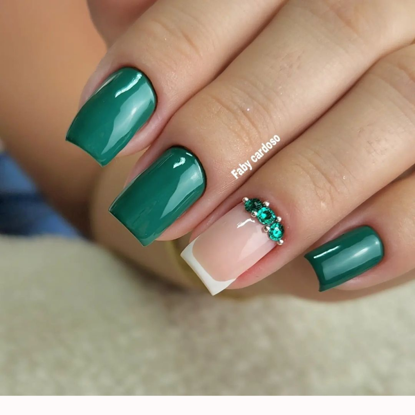 essa nail art é cheia de estilo e vai agradar quem é mais moderna e descolada - Unhas decoradas com francesinha verde metalizado: