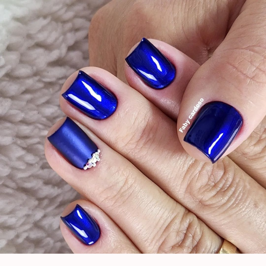 Para quem quer investir em uma abordagem mais moderna, combinar tons de verde, amarelo ou azul (ou qualquer um deles) com um esmalte de efeito metálico é perfeito. Você pode criar desenhos geométricos mais abstratos ou recorrer à clássica francesinha. - Glitter é o esmalte preferido das brasileiras