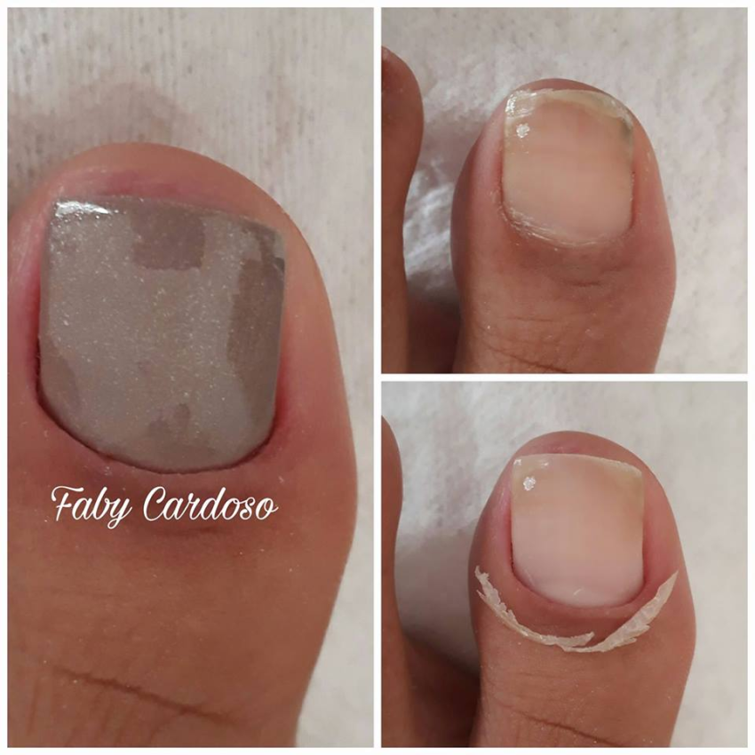 Aqui está uma ideia para pintar suas 8 unhas com esmalte vermelho e esmalte rosa. Para o dedo único (dedão do pé), coloque uma pedra em cima da outra para um total de duas pedras no meio do dedão do pé.
