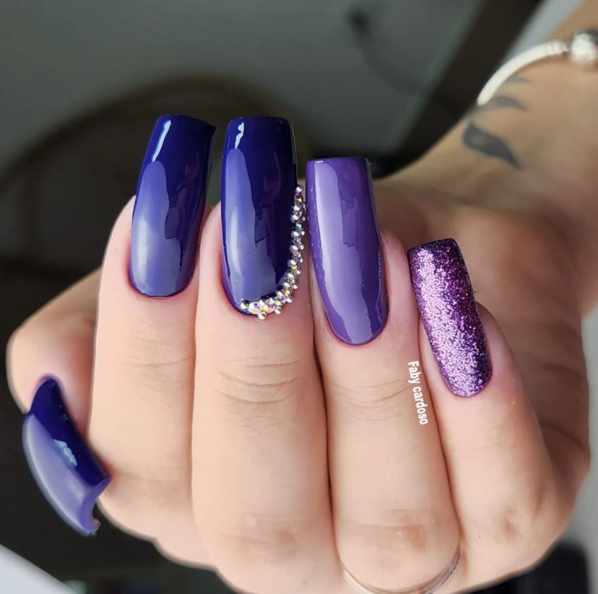 - Uma opção é pintar as unhas com um esmalte de cor sólida e adicionar uma camada de glitter por cima para um efeito brilhante.