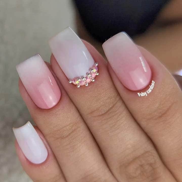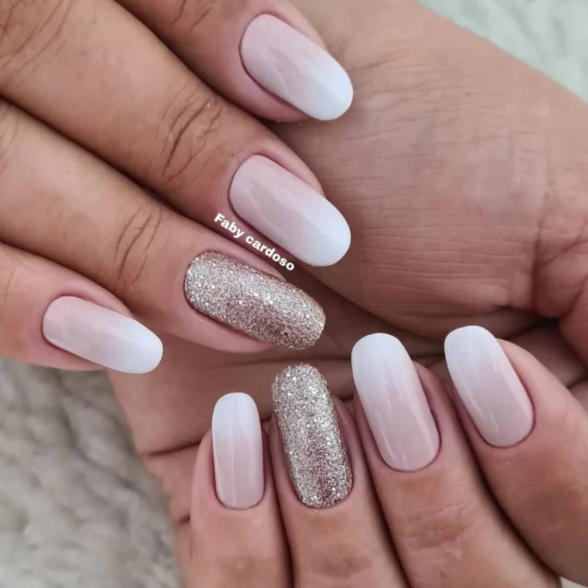 OH! nada como o glamour nas unhas…as unhas são decoradas com glitters e degradês você pode escolher tons e contrastar até com glitter Pode ser usado em todo o corpo, preste atenção nos tons nude com branco e até aposte em um strass menina