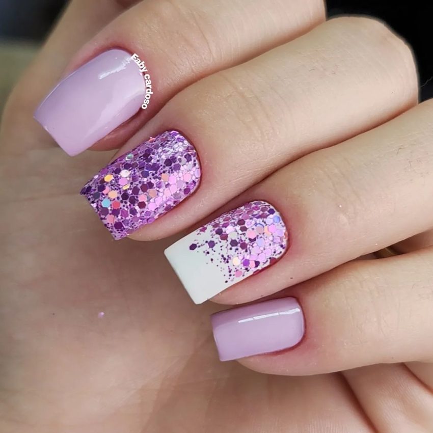 Neste caso, menos é mais! Escolha uma ou duas unhas e abuse do brilho. Você pode usar o mesmo tom do seu esmalte, optar por um esmalte com glitter ou, se quiser um visual mais glamoroso, combiná-lo com uma decoração diferente.