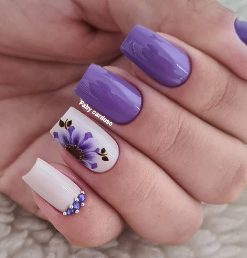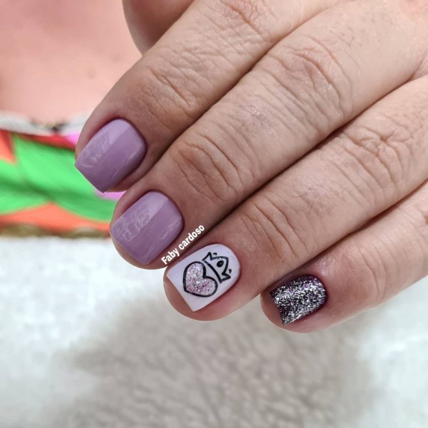Estrelas, corações, mas também podem se destacar aqui e ali podem ficar bem em unhas roxas lindamente decoradas.
